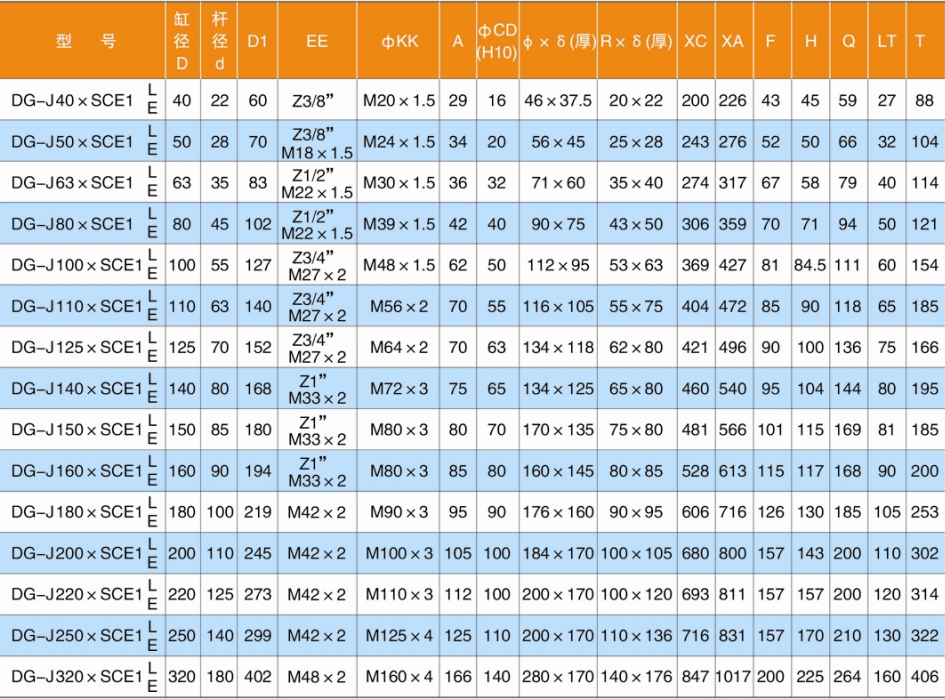 L:活塞桿連接方式代號 L=螺紋連接;E=耳環(huán)連接